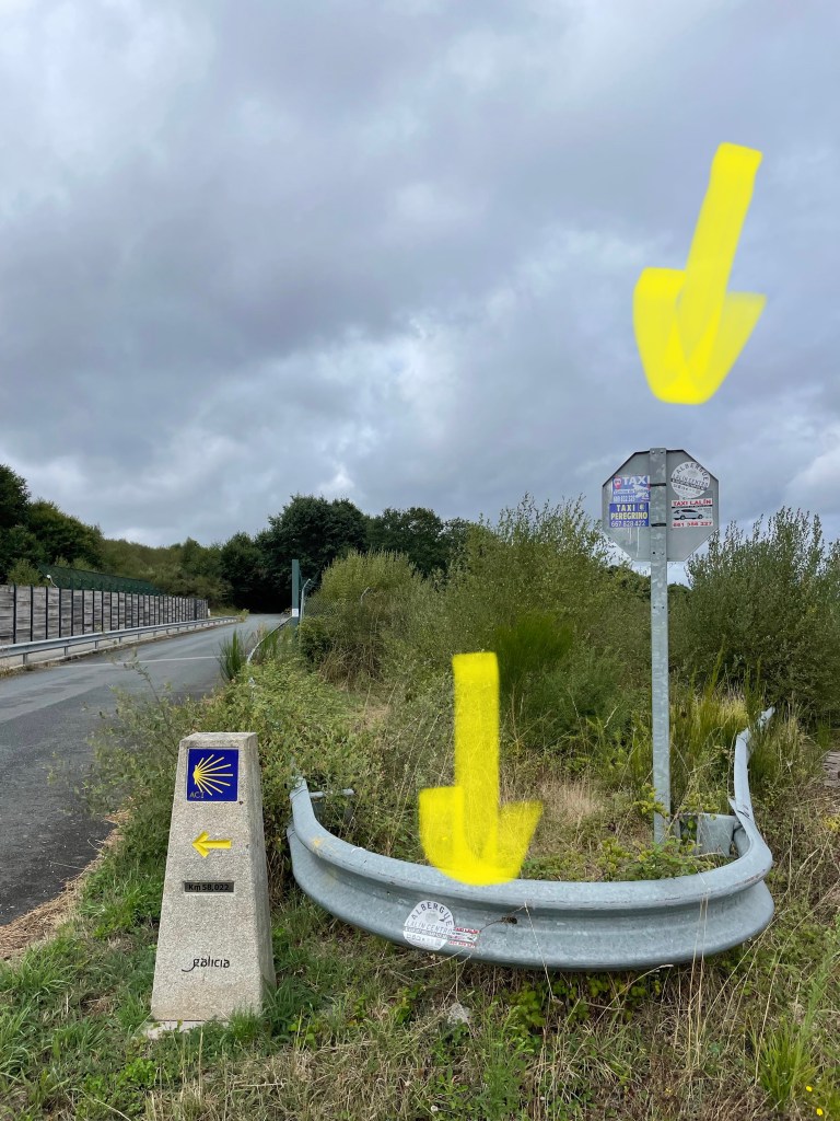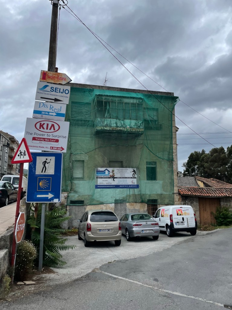 Von Monica meiner Mitpilgerin von gestern, sowie heute teilweise, habe ich gelernt dass es nicht nur Peregrinos gibt. Auf den letzten 100 km trifft man auch Taxirinos und Turitrinos. Der Taxirino gibt vor zu laufen, jedoch bewegt er, oder sie natürlich, sich vorzügsweise mit dem Taxi fort. Der Turistrino versucht von den günstigsten Herbergen zu profitieren und einen kostengünstigen Urlaub zu machen. Er läuft wohl mehr als der Taxirino, doch auch er/sie nutzt gerne Bus und Bahn für längere Wegstrecken. Die Taxiunternehmen betreiben daher zielgruppengerechte Werbung und platzieren ihre Telefonnummern direkt neben den Wegweisern für den Camino.