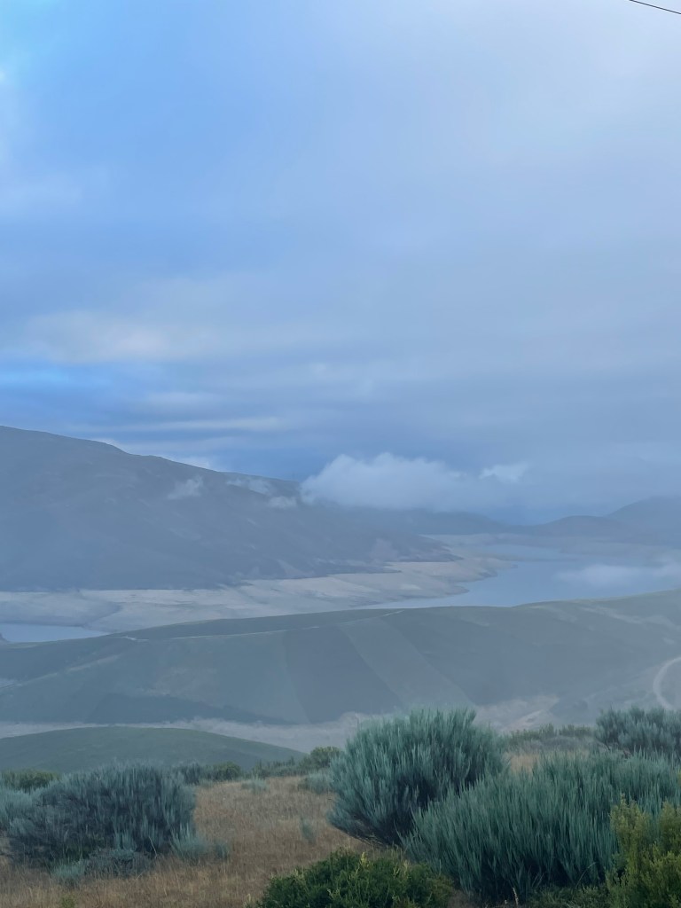 Mehr Aussicht mit halbleerem Stausee und Nebel und Wolken und tollem Licht …