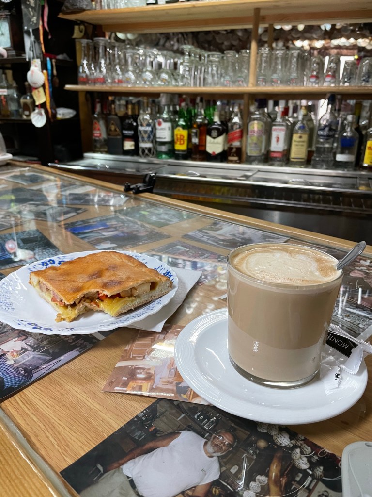 In der Bar gab‘s einen Kaffee und ein süßes Teilchen. Die Bardame hatte ein tolles Tshirt an, Camino und Bier vereint. „Wünschst Du Dir die Weisheit des Jakobswegs zu entdecken?“ als Werbung einer Biermarke.