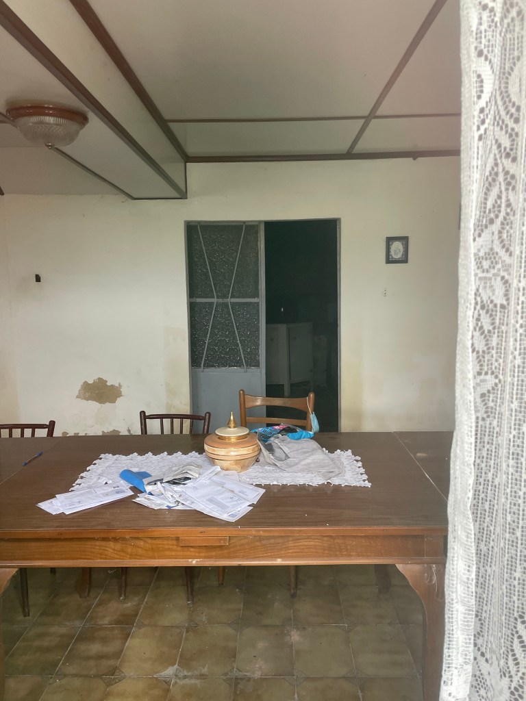 Die nächsten Eindrücke fand ich etwas gruselig. Beim Blick durch das Fenster des verlassenen Hauses habe ich entdeckt, dass noch ungeöffnete Post auf dem Esszimmertisch liegt. Fast wie in einem Horrorfilm.