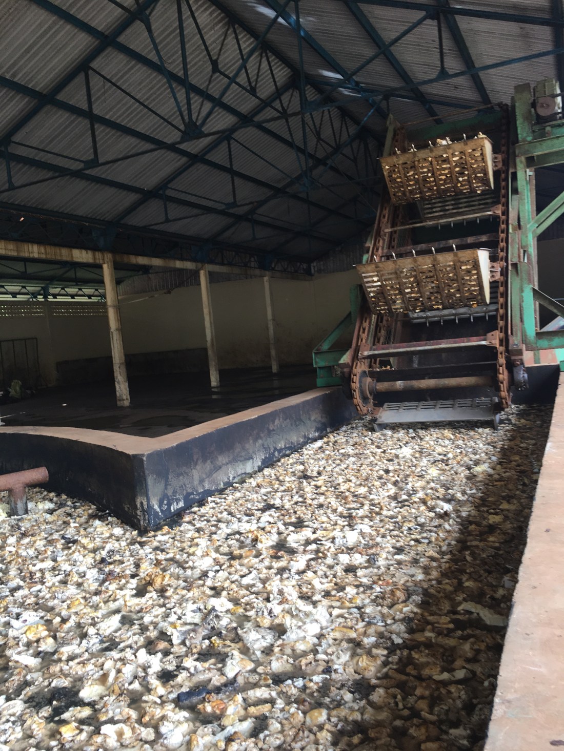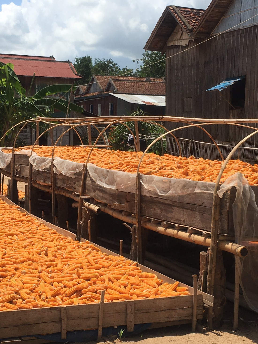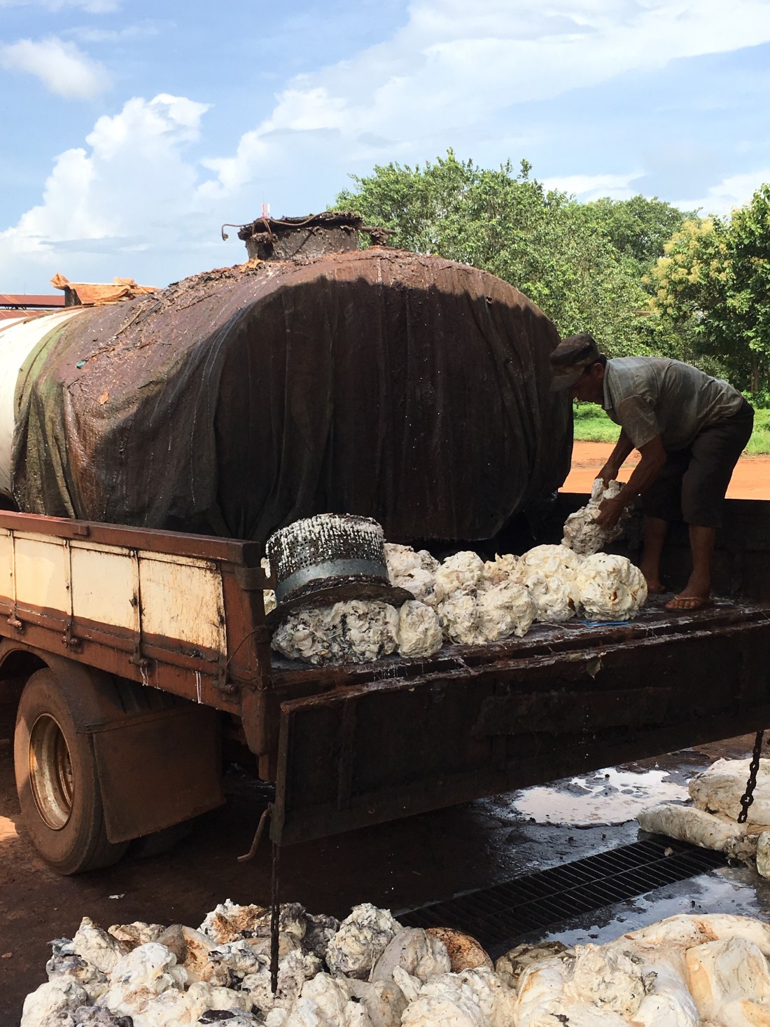 … weil ich noch gerne auf die andere Mekongseite zu einer Naturkautschukfabrik wollte. Die Straße dorthin war leider relativ stark befahren und so langsam zogen wieder schwarze Wolken auf.