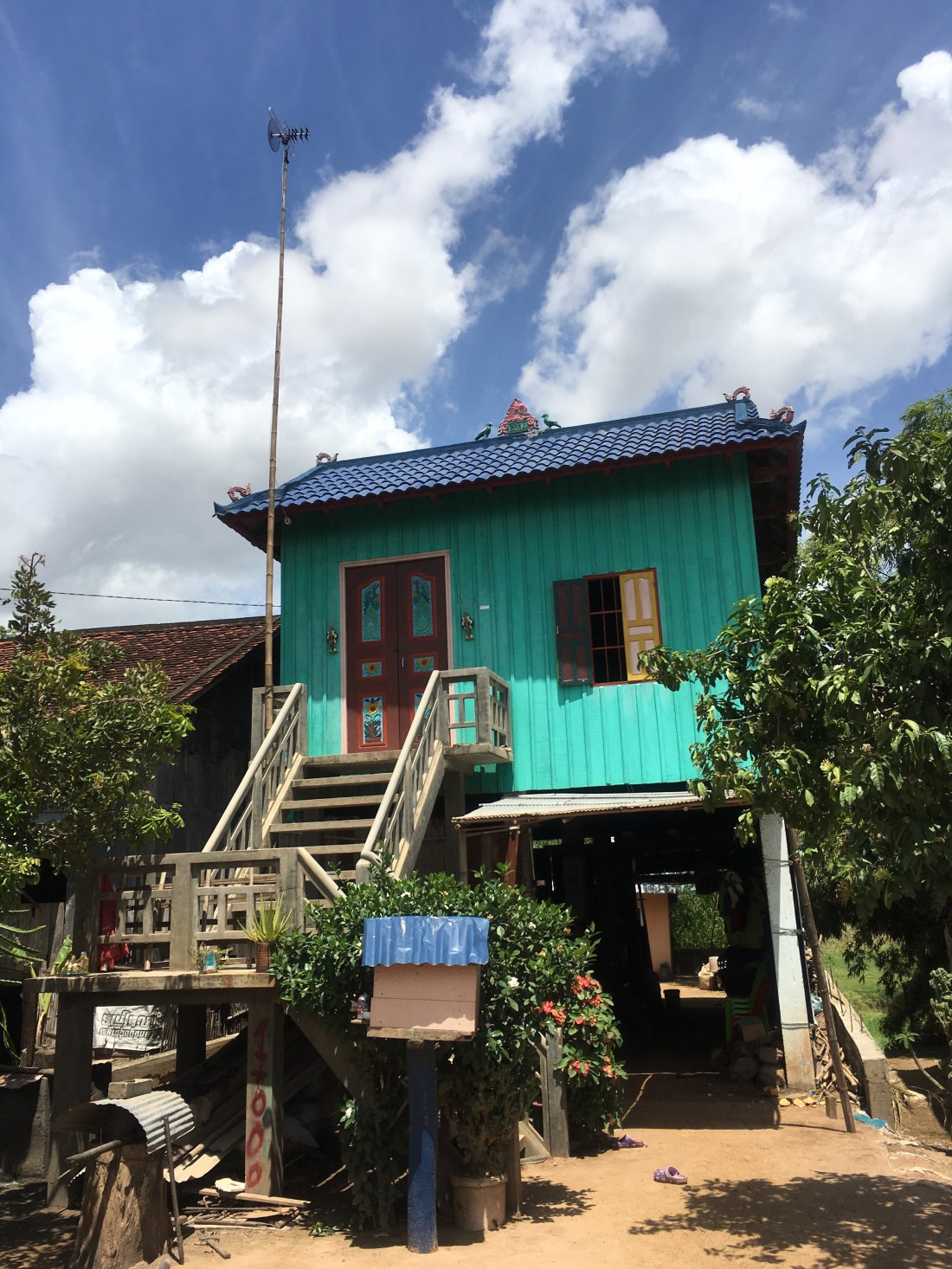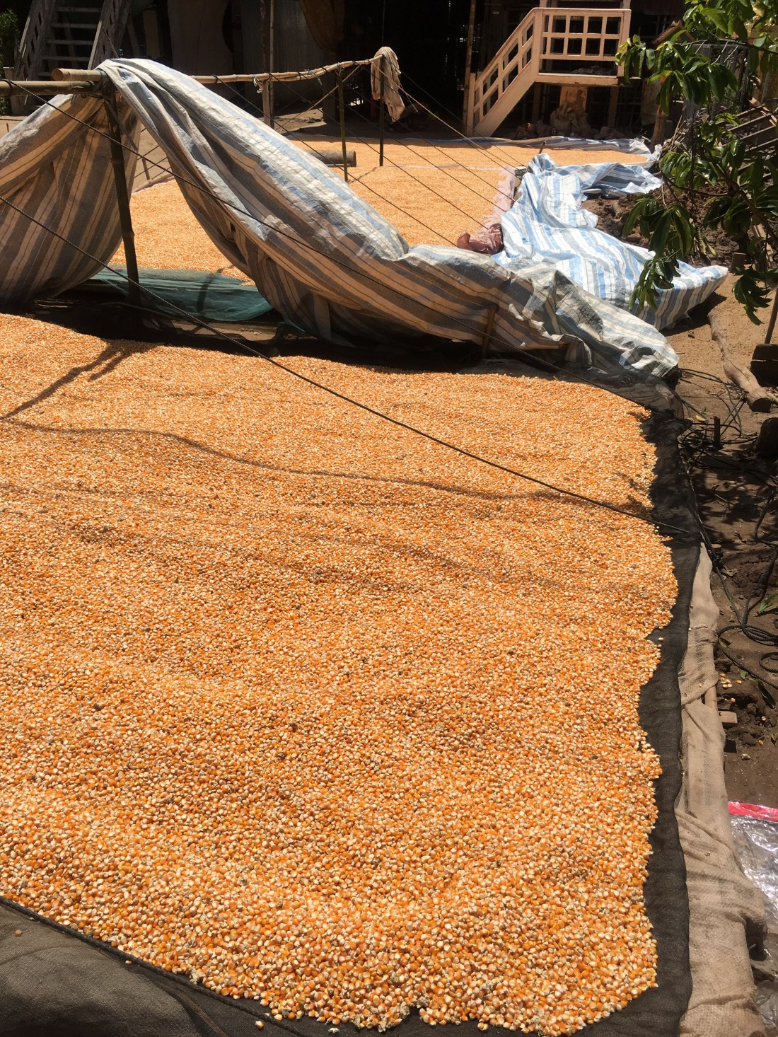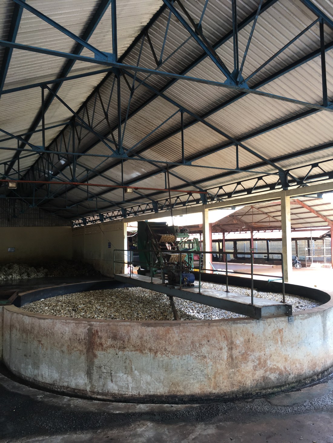 … weil ich noch gerne auf die andere Mekongseite zu einer Naturkautschukfabrik wollte. Die Straße dorthin war leider relativ stark befahren und so langsam zogen wieder schwarze Wolken auf.