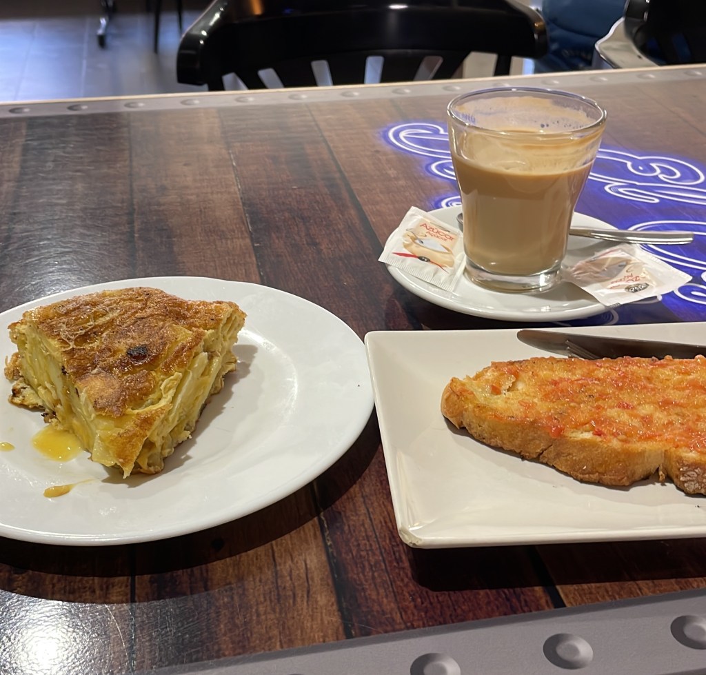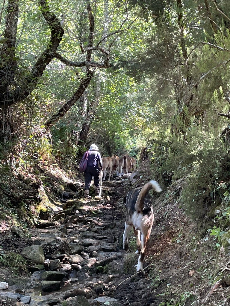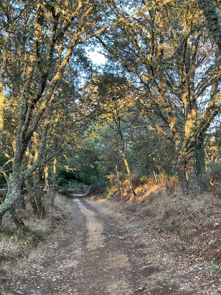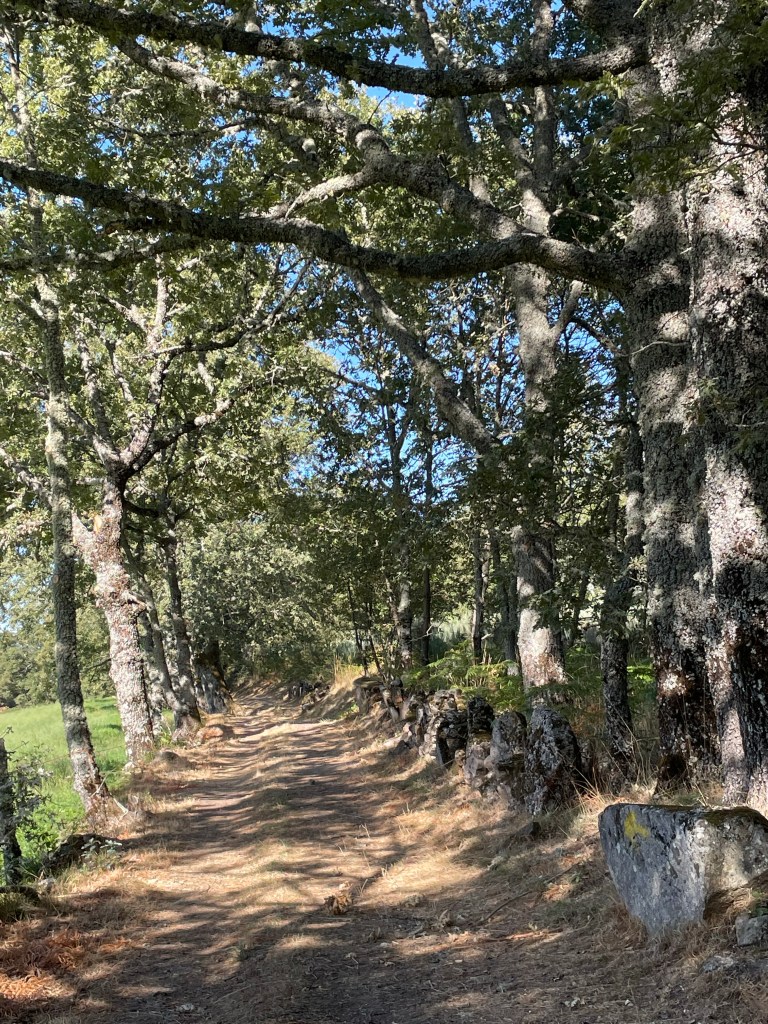 Bis ich oben an der Grenze zu Galicien ankam. Hier gab’s Frühstück mit Blick ins Tal. Die galicischen Wegweiser enthalten nun immer die Reststrecke bis Santiago. Auf die dritte Stelle hinterm Komma genau. Das hat mich anfangs etwas gestresst, weil ich immer ausgerechnet habe wie viel ich heute noch laufen muss.
