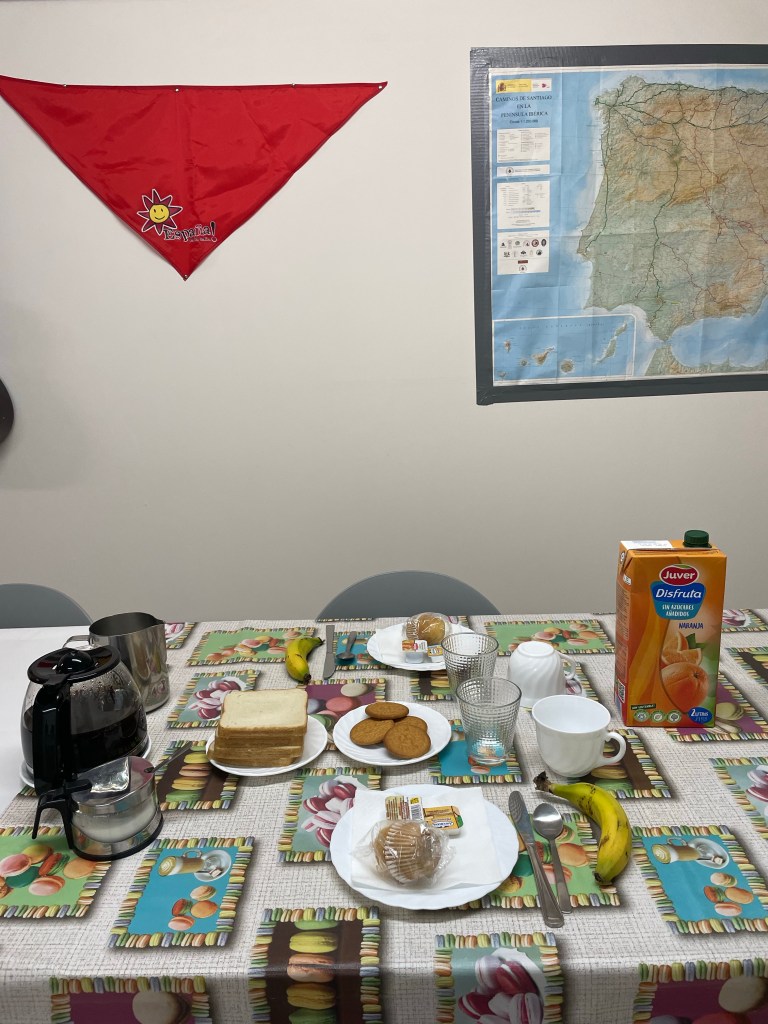Eigentlich wollte ich die Herberge noch fotografieren, doch heute sind vier Spanier da, die heute ihre zweite Etappe hatten und zwei Franzosen, den einen kannte ich bereits von Zamora. Also ist die Hütte voll. Nicht wirklich, denn die Herberge wurde vor drei Monaten neu eröffnet und hat 40 Schlafplätze.