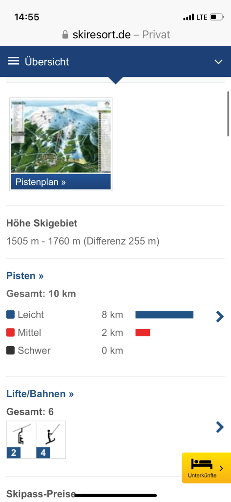 Aber das nächste Skigebiet ist gleich um die Ecke. Nicht mal 50 km entfernt. Ich hab gleich mal nachgeschaut wie attraktiv das Skigebiet ist. Seht selbst.